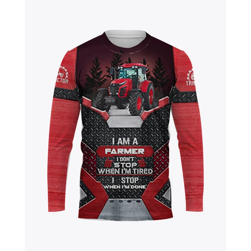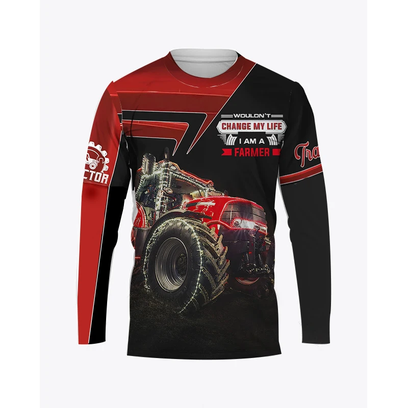 Farm Tractor Pattern 3D Print Autumn Men’s O-Neck T-shirt Casual Long Sleeve Oversized Pullover Fashion Streetwear Men Clothing